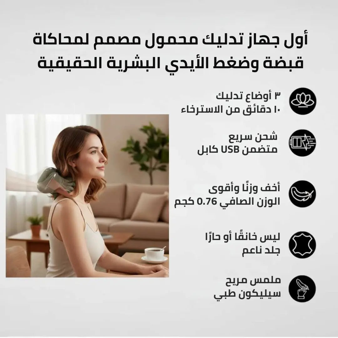 - تخفيف فوري للألم والتوتر: تدليك عميق يحاكي حركة اليد البشرية ليذيب الشد العضلي بسرعة.